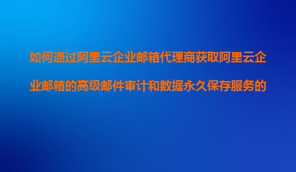 如何通过阿里云企业邮箱代理商获取高级邮件审计和数据永久保存服务的优惠