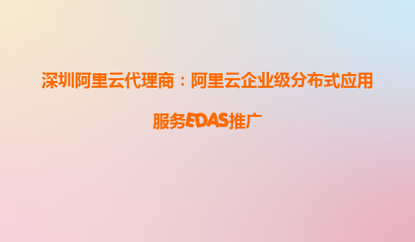 深圳阿里云代理商:阿里云企业级分布式应用服务EDAS推广