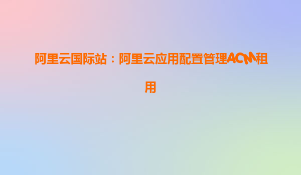 阿里云国际站:阿里云应用配置管理ACM租用全解析