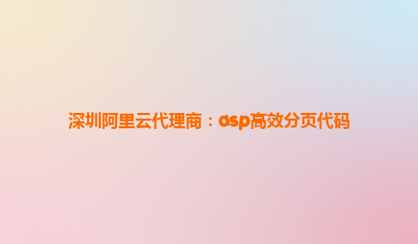 深圳阿里云代理商:ASP高效分页代码实现与阿里云优势解析