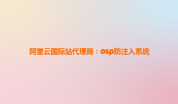 阿里云国际站代理商:ASP防注入系统的安全解决方案