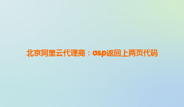 阿里云ASP返回上两页代码实现与阿里云的优势解析