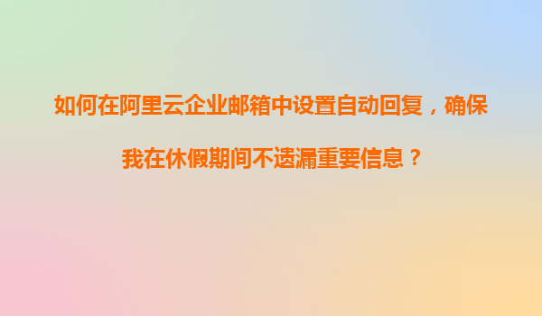 如何在阿里云企业邮箱中设置自动回复,确保休假期间不遗漏重要信息?