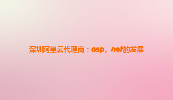 深圳阿里云代理商:ASP.NET在云计算时代的发展机遇与优势