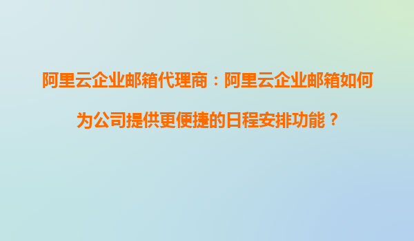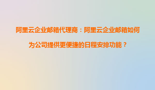 阿里云企业邮箱代理商:阿里云企业邮箱如何为公司提供更便捷的日程安排功能? 一、阿里云企业邮箱的日程管理优势 在当今快节奏的商业环境中,高效的日程管理已成为企业提升生产力的关键。阿