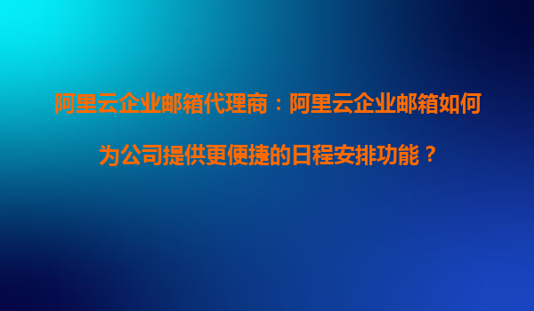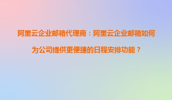 阿里云企业邮箱代理商:阿里云企业邮箱如何为公司提供更便捷的日程安排功能? 一、阿里云企业邮箱的日程管理优势 在当今快节奏的商业环境中,高效的日程管理已成为企业提升生产力的关键。阿
