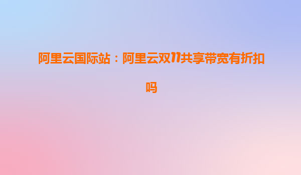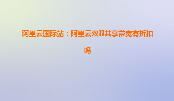 阿里云国际站双11大促:共享带宽优惠解析与核心优势盘点 一、阿里云双11共享带宽优惠全解读 每年的双11购物狂欢节不仅是消费者的盛宴,更是企业级用户优化IT成本的重要时机。阿里云国际