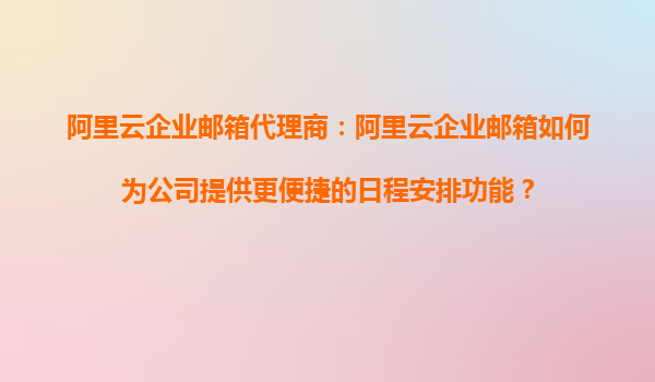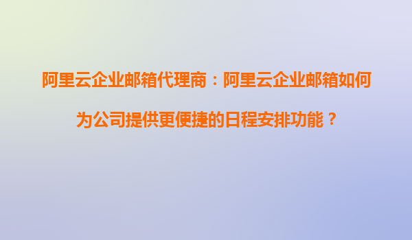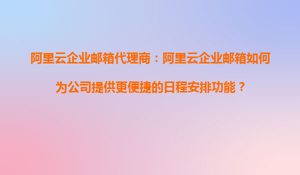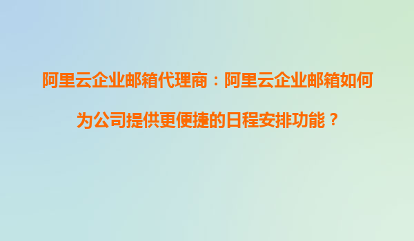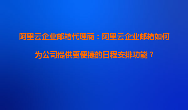 阿里云企业邮箱代理商:阿里云企业邮箱如何为公司提供更便捷的日程安排功能? 一、阿里云企业邮箱的日程管理优势 在当今快节奏的商业环境中,高效的日程管理已成为企业提升生产力的关键。阿
