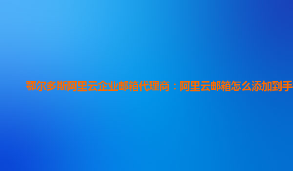 鄂尔多斯阿里云企业邮箱代理商:阿里云邮箱怎么添加到手机上 作为鄂尔多斯阿里云企业邮箱代理商,我们深知阿里云企业邮箱的优势以及使用后的感受。在本文中,我们将详细解答如何将阿里云企业邮箱添加到手机上。 一