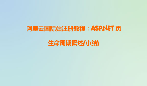 阿里云国际站注册教程:ASP.NET页生命周期概述 在现代互联网时代,选择一个可靠的云服务提供商是至关重要的。阿里云作为全球领先的云服务提供商之一,提供了丰富的云计算产品和服务。本文将结合阿里云国际站的