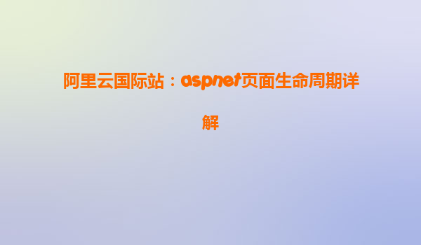 阿里云国际站:ASP.NET页面生命周期详解 ASP.NET是微软开发的一种用于构建Web应用程序的技术,因其强大的功能和灵活的开发方式,受到了全球开发者的青睐。在Web开发过程中,理解ASP.NET页面生命周期至关
