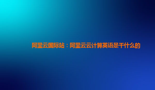 阿里云国际站:阿里云云计算英语是干什么的 随着云计算技术的不断发展,越来越多的企业和开发者开始接触并使用云服务。阿里云作为全球领先的云计算平台之一,不仅在国内市场占据重要位置,而且其国际化战略也在不断