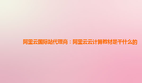 阿里云国际站代理商:阿里云云计算教材是干什么的 随着云计算技术的不断发展,越来越多的企业开始意识到云计算对于业务发展的重要性。阿里云作为全球领先的云计算服务提供商,凭借其强大的技术支持、丰富的产品体系