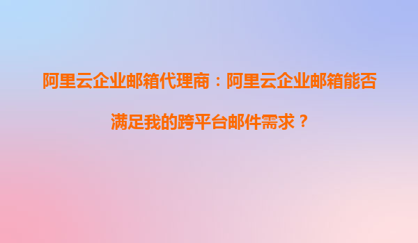 阿里云企业邮箱代理商:阿里云企业邮箱能否满足我的跨平台邮件需求? 在现代商业环境中,跨平台邮件通信已成为企业日常运营的核心需求之一。无论是员工使用电脑、手机还是平板设备,都能随时随地收发邮件,