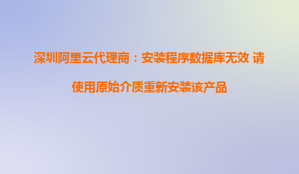深圳阿里云代理商:安装程序数据库无效,请使用原始介质重新安装该产品 一、问题背景与标题解读 在使用阿里云服务时,有些用户会遇到“安装程序数据库无效,请使用原始介质重新安装该产品”这一提示。这一问题通常