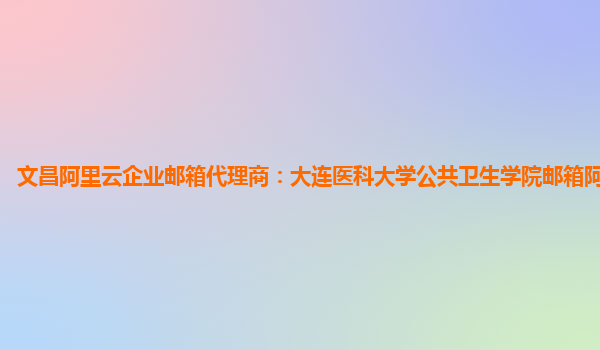 • 阿里云企业邮箱代理商:大连医科大学公共卫生学院 优势一:稳定可靠的服务 作为文昌阿里云企业邮箱代理商,我们保证为大连医科大学公共卫生学院提供稳定可靠的邮箱服务。阿里云企业邮箱采用先进的云计算技术,拥有