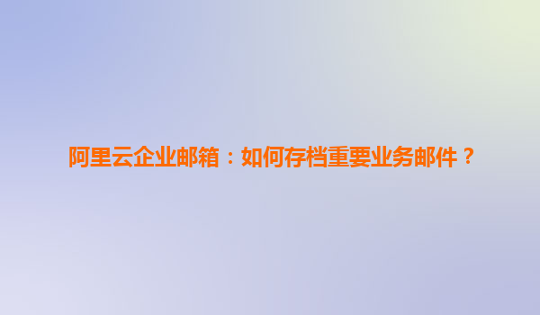 阿里云企业邮箱:如何存档重要业务邮件? 在现代商业环境中,电子邮件已成为企业沟通的主要工具。无论是与客户、合作伙伴,还是内部员工的沟通,都离不开电子邮件的支持。尤其对于企业来说,邮件不仅承载着重要