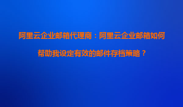 阿里云企业邮箱代理商:阿里云企业邮箱如何帮助设定有效的邮件存档策略? 随着企业数字化转型的加速,电子邮件作为日常沟通的核心工具,其数据安全和合规管理变得尤为重要。无论是法律合规性要求,还是企业