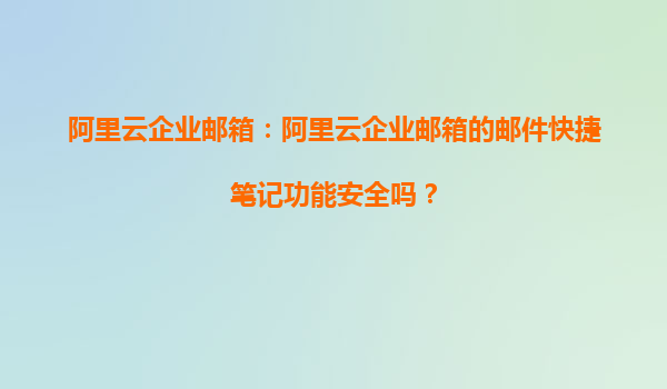阿里云企业邮箱:邮件快捷笔记功能安全吗? 在现代企业运营中,电子邮件已经成为了沟通和信息传递的重要工具。阿里云企业邮箱作为一款高效、可靠的邮件服务产品,得到了广泛的应用。近年来,阿里云企业邮箱增加了许