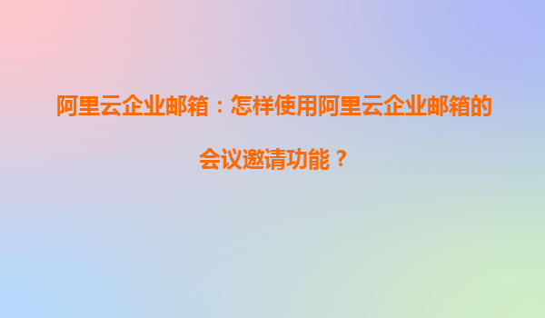 如何使用阿里云企业邮箱的会议邀请功能 阿里云企业邮箱作为一款专业的商务邮箱服务,提供了许多高效的办公功能,其中包括会议邀请功能。本文将详细介绍如何使用阿里云企业邮箱的会议邀请功能,并分析其在商务沟