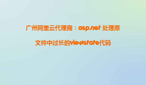 广州阿里云代理商:ASP.NET处理原文件中过长的ViewState代码 随着互联网的发展,越来越多的企业选择通过web应用来进行业务管理和数据交互。在众多web开发技术中,ASP.NET凭借其强大的功能、丰