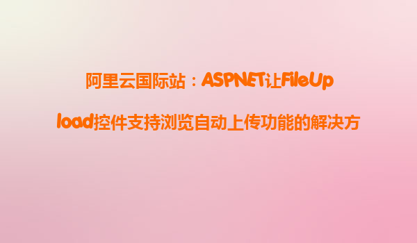 阿里云国际站:ASPNET让FileUpload控件支持浏览自动上传功能的解决方法 在现代web开发中,文件上传是一个常见的需求,尤其在处理用户文件提交时,我们常常使用像ASPNET这样的技术来实现。而在一些特定的场