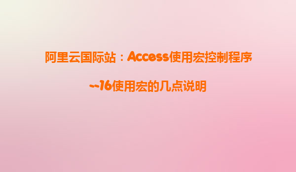 阿里云国际站:Access使用宏控制程序—16使用宏的几点说明 在当前的云计算时代,越来越多的企业选择将自己的IT基础设施迁移至云平台。阿里云作为全球领先的云服务提供商,凭借强大的技术实力和完善的产品