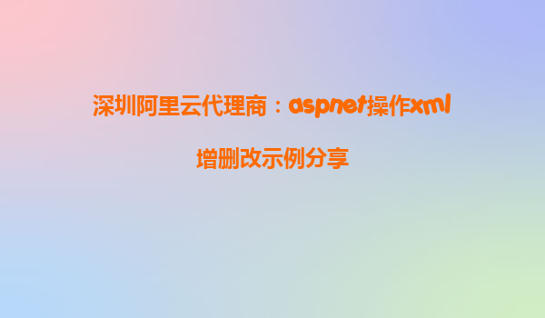 深圳阿里云代理商:ASP.NET操作XML增删改示例分享 在现代企业中,数据存储与管理的重要性日益增加。作为一家专业的云服务提供商,阿里云(AlibabaCloud)为各类企业提供了强大的云计算能力,帮助其实现高效的资源
