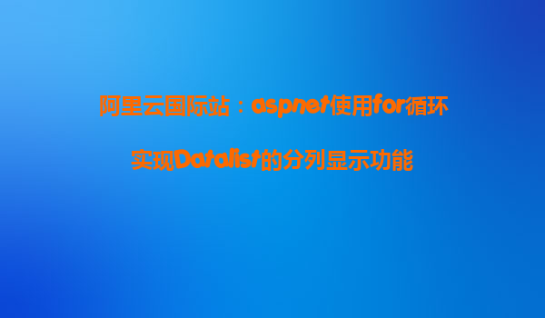 阿里云国际站:ASP.NET使用for循环实现Datalist的分列显示功能 在现代web开发中,Datalist控件是常用的控件之一。它通常用于显示和管理数据列表,并能够通过循环展示数据项。ASP.NET作为微软的开发框架,提供了