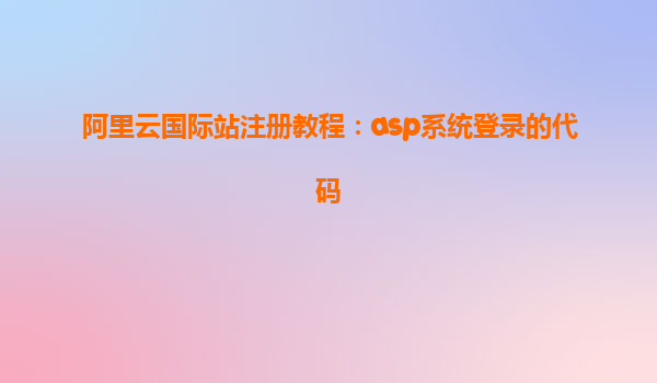 阿里云国际站注册教程:ASP系统登录代码实现与云服务优势解析 一、阿里云国际站注册流程概述 注册阿里云国际站(AlibabaCloudInternational)是开展海外业务的第一步,流程如下: