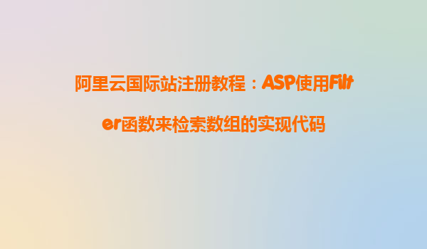 阿里云国际站注册教程:ASP使用Filter函数来检索数组的实现代码 在本篇文章中,我们将结合阿里云国际站的注册教程,详细介绍如何使用ASP中的Filter函数来检索数组。与此同时,我们还将探讨阿里云的优势以及如何利用