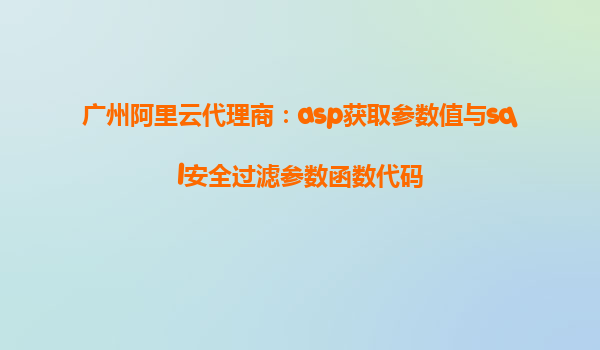 广州阿里云代理商:ASP获取参数值与SQL安全过滤参数函数代码 随着互联网技术的发展,云计算的应用越来越广泛,许多企业开始将他们的数据存储和计算工作转移到云端。阿里云作为中国领先的云服务平台,