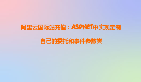 阿里云国际站充值:ASPNET中实现定制自己的委托和事件参数类 在现代企业级开发中,云服务已经成为不可或缺的一部分,阿里云国际站(AlibabaCloudInternational)作为全球领先的云服务平台,为开发者提供了强大的