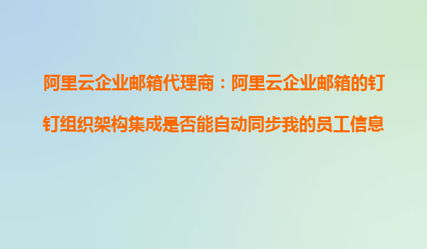 阿里云企业邮箱代理商:阿里云企业邮箱的钉钉组织架构集成是否能自动同步员工信息到邮箱通讯录? 一、阿里云企业邮箱的核心优势 阿里云企业邮箱作为国内领先的企业级邮箱解决方案,具备以下核心优