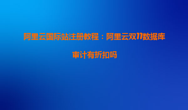 阿里云国际站注册教程:阿里云双11数据库审计有折扣吗? 发布于:2023年10月|作者:阿里云服务指南 导读:随着双11购物狂欢节的临近,阿里云作为全球领先的云计算服务提供商,也为企业和开发