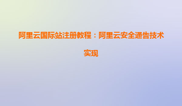 阿里云国际站注册教程与安全通告技术实现 引言 在当今数字化时代,云计算作为企业和个人数据管理的核心,安全性与可靠性尤为重要。阿里云作为全球领先的云服务提供商,不仅在性能和功能上居于前列,其安全通告