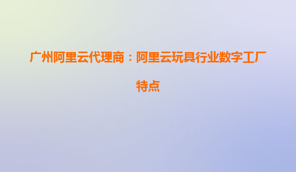 广州阿里云代理商:阿里云玩具行业数字工厂特点解析 随着数字化转型浪潮的推进,玩具行业正迎来前所未有的变革机遇。作为广州地区专业的阿里云代理商,我们深入理解玩具企业的需求,结合阿里云的技术优势,为企
