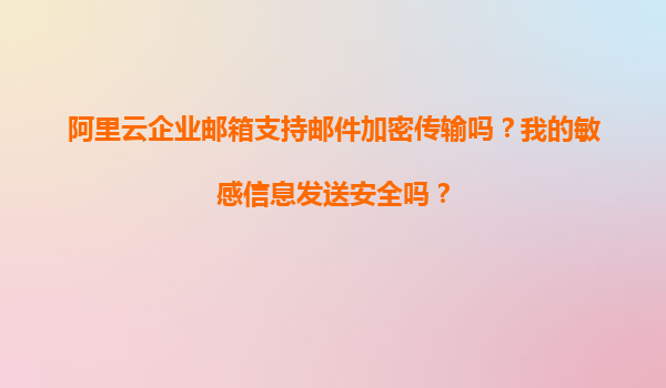 阿里云企业邮箱支持邮件加密传输吗?敏感信息发送安全吗?一、阿里云企业邮箱的安全核心能力阿里云企业邮箱基于阿里巴巴集团20年邮件系统技术积累,为政企客户提供高