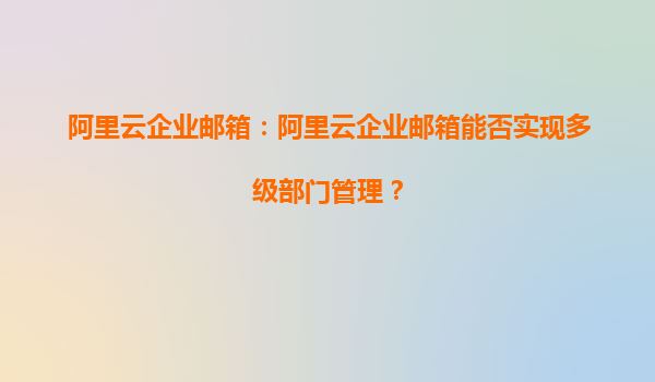 阿里云企业邮箱:能否实现多级部门管理? 一、阿里云企业邮箱的多级部门管理能力 在当今企业数字化转型的浪潮中,高效的内部沟通与组织管理成为刚需。阿里云企