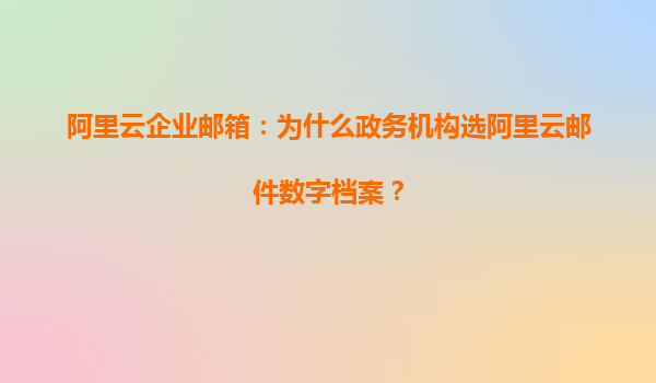 阿里云企业邮箱:为什么政务机构选阿里云邮件数字档案? 在数字化政务转型的浪潮中,邮件系统作为日常沟通与管理的重要工具,其安全性和稳定性尤为重要。政务机构对邮件服务的要求不仅限于基础功能,更