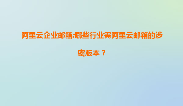 阿里云企业邮箱:哪些企业适合阿里云邮箱的涉密版? 在当今数字化时代,企业邮箱不仅是沟通的工具,更是数据安全的重要防线。阿里云企业邮箱作为国内领先的企业邮箱服务之一,其涉密版(高安全版本)凭借强大的