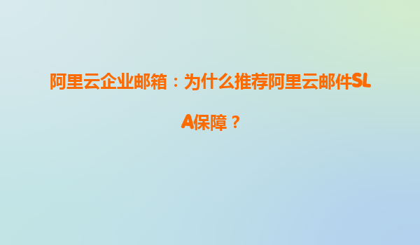阿里云企业邮箱:为什么推荐阿里云邮件SLA保障? 一、什么是阿里云企业邮箱的SLA保障? 阿里云企业邮箱的SLA(ServiceLevelAgreement,服务等级协议)是阿里云对企业用户提供的服务质量承诺,涵盖邮箱服