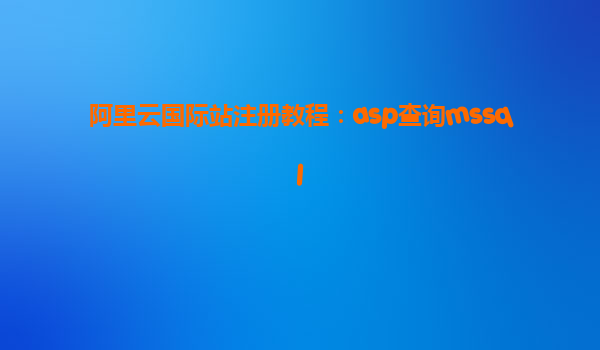 阿里云国际站注册教程:ASP查询MSSQL数据库实践指南 一、前言:为什么选择阿里云国际站? 阿里云国际站作为全球领先的云计算服务提供商,为开发者提供了稳定、安全、高性能的云数据库服务。对于需要