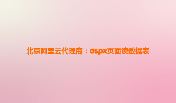 北京阿里云代理商:ASPX页面读取数据表的实践与阿里云优势解析 一、ASPX页面读取数据表的技术实现 在.NET开发中,ASPX页面通过ADO.NET或EntityFramework等技术连接数据库并读取数据表是常见需求。以