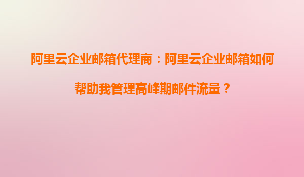 阿里云企业邮箱代理商:阿里云企业邮箱如何帮助我管理高峰期邮件流量? 在当今快节奏的商业环境中,企业邮箱不仅是沟通的工具,更是业务运营的核心枢纽。尤其在邮件流量高峰期,如何确保邮件系统的稳
