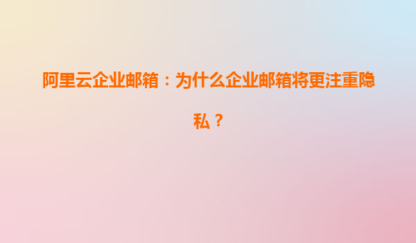 阿里云企业邮箱:为什么企业邮箱将更注重隐私? 随着互联网的发展,信息的流通变得愈加便捷,但与此同时,隐私问题也日益突出。尤其是对于企业来说,如何保护公司员工、客户和合作伙伴的隐私信息,已经成为当今
