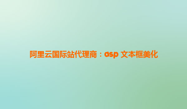 阿里云国际站代理商:ASP文本框美化解决方案与技术实践 一、标题解析与需求背景 "阿里云国际站代理商:ASP文本框美化"这一标题包含三个核心要素: 1.阿里云国际站代理商:指向阿里云全球服务生态中的