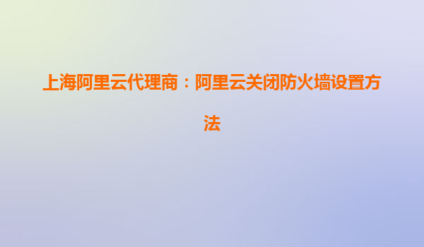 上海阿里云代理商:阿里云关闭防火墙设置方法 随着云计算的快速发展,阿里云已经成为了全球领先的云服务平台之一,特别是在中国市场,其在企业级云服务、人工智能、大数据等领域的应用取得了显著的成就。作为阿里云