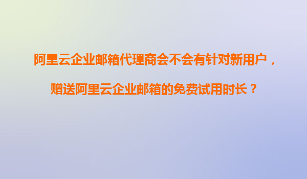 阿里云企业邮箱代理商是否会为新用户提供免费试用时长? 一、阿里云企业邮箱代理商是否提供免费试用? 阿里云企业邮箱作为国内主流的云邮箱服务之一,代理商通常也会根据官方政策为其推广的新客户提供