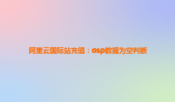 阿里云国际站充值的ASP数据空值检测解决方案 在全球化业务拓展过程中,企业常面临跨境支付与数据处理的挑战。阿里云国际站提供的ASP(AlibabaCloudSecurePayment)支付接口,通过智能空值检测机制完美解决了交易